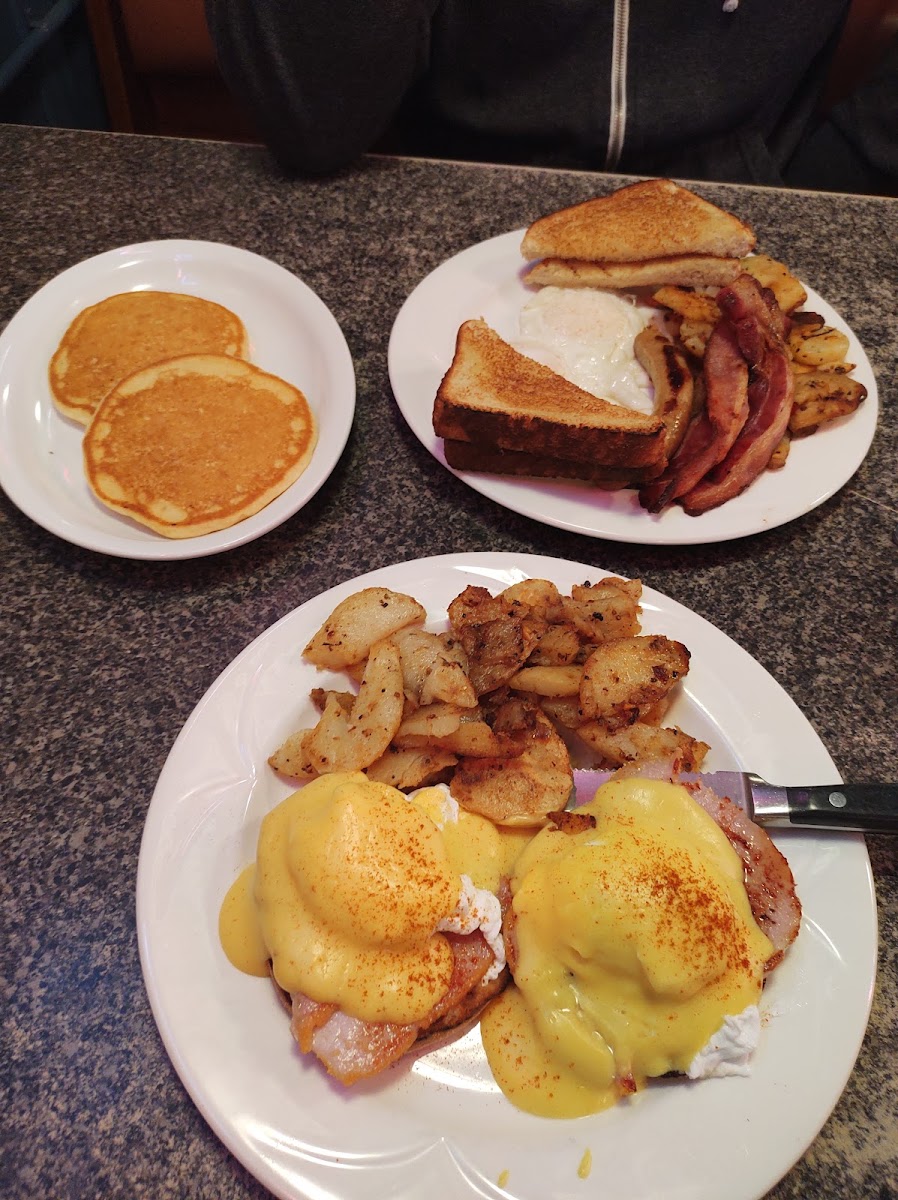 Eggs Benedict - A classic breakfast option with perfectly poached eggs, Canadian bacon, and rich hollandaise sauce.