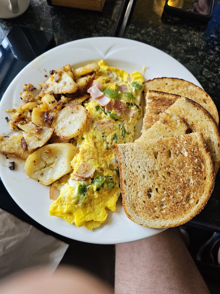 Western Omelette - A hearty, stuffed omelette with ham, peppers, and onions, perfect for starting your day.